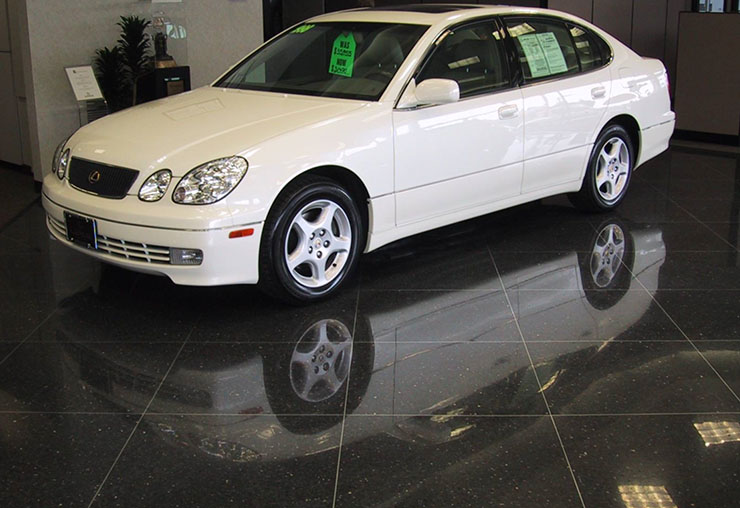 下圖為汽車展廳實際效果,經過力石伯樂®致密鋼化之后的地坪,呈現(xiàn)大理石光澤,替代傳統(tǒng)大理石、花崗巖、地磚等傳統(tǒng)石材,不再需要開山挖礦,保護了綠水青山。而且具有防滑抗?jié)B,耐磨耐壓,防塵防火,維護簡單等眾多優(yōu)點。