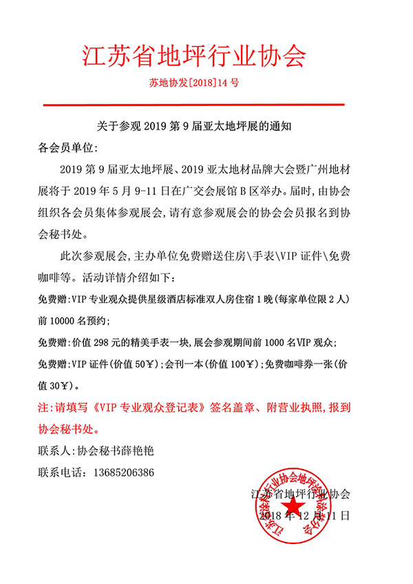 江蘇省地坪行業(yè)協(xié)會(huì)參觀2019第9屆亞太地坪展通知
