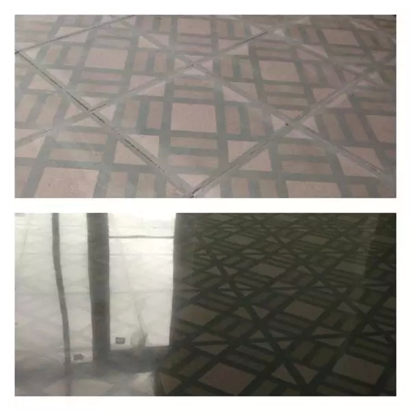 對已經(jīng)鋪好的地磚進行研磨風(fēng)險比較大,因為水平面不同。施工人員大部分時間都不能坐在機器上,因為需要精湛的平衡技術(shù)和獨創(chuàng)性來確保圖案維持原樣。承包方采用了一系列的濕磨和干磨步驟,然后施工了RETROPLATE鋼化劑。施工人員把地面拋光到1500目,施工兩遍RETROGUARD來提高耐污性。